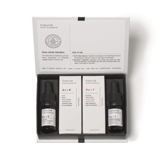 Wrinkles are instantly smoothed by pairing the potency of Acai Rose, 5ml antioxidants with the vitamin C of Rosehip Ylang Ylang, 5ml serums.